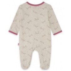 PELELE DE BEBÉ CON CIERRE FRONTAL POR BOTONES DE PRESIÓN. ESTAMPADO CON CARITAS DE GATOS, CUELLO Y PUÑOS RIBETEADOS EN COLOR ROSA EMPOLVADO.