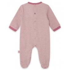 PELELE DE BEBÉ CON CUELLO Y PUÑOS RIBETEADOS EN COLOR ROSA EMPOLVADO. APERTURA EN LA PARTE TRASERA CON BOTONES DE PRESIÓN. DISEÑO DE RAYAS CON ESTAMPADO DE LETRAS "CAT".