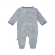 PELELE DE BEBÉ CON CUELLO Y PUÑOS RIBETEADOS EN COLOR AZUL EMPOLVADO. APERTURA EN LA PARTE TRASERA CON BOTONES DE PRESIÓN. DISEÑO DE RAYAS CON ESTAMPADO DE LETRAS "DOG".