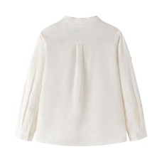 CAMISA DE VESTIR PARA NIÑO CON CUELLO MAO, EN COLOR BLANCO ROTO (CRUDO) DE MANGA LARGA Y CON MEDIA BOTONADURA. TRABILLAS PARA REGULAR LAS MANGAS Y TEJIDO 60% VISCOSA Y 40% LINO DE ALGODÓN.