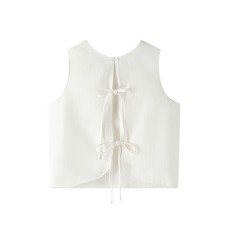 BLUSA PARA NIÑA DE COLOR BLANCO ROTO SIN MANGAS, ABOTONADA EN LA ESPALDA CON UNOS LAZOS DELICADOS A JUEGO.