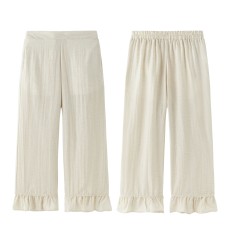 CONJUNTO DE VESTIR PARA NIÑA EN COLOR CRUDO. PANTALONES FLUIDOS ACABADOS EN VOLANTE. TEJIDO 59% VISCOSA, 21% NAYLON Y 20% LINO TRATADO DE ALGODÓN.