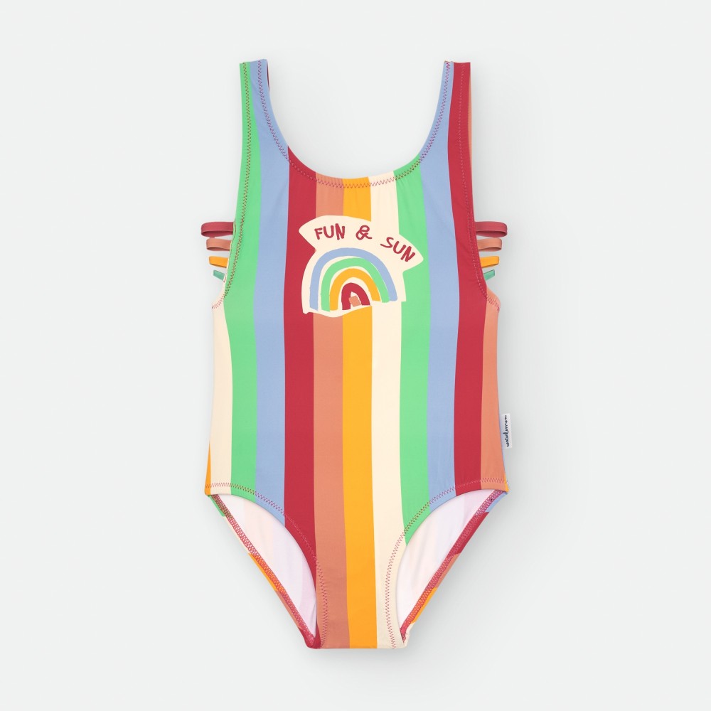BAÑADOR DE LYCRA PARA NIÑA CON ESTAMPADO DE ARCOIRIS.