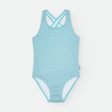 BAÑADOR DE LYCRA PARA NIÑA CON ESTAMPADO DE ESTRELLAS TURQUESAS.