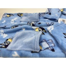 BATA DE CORALINA CON CREMALLERA Y BOLSILLOS EN COLOR AZULINA CON DIBUJO ESTAMPADO DE BLUEY. LICENCIA ORIGINAL.