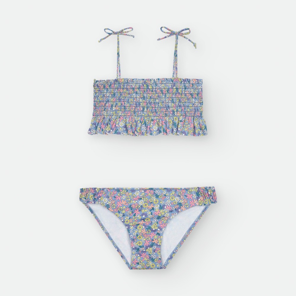 BIKINI DE LYCRA PARA NIÑA CON ESTAMPADO DE FLORES MULTICOLOR.