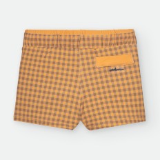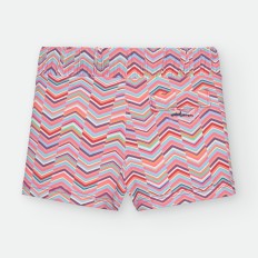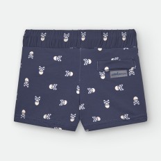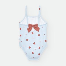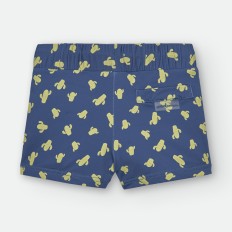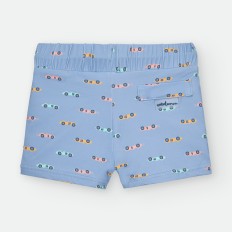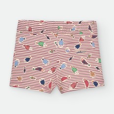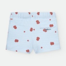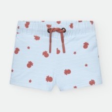 BAÑADOR BOXER DE LYCRA PARA NIÑO DE RAYAS CELESTES Y BLANCAS, CON ESTAMPADO DE PULPITOS Y ESTRELLAS ROJAS. CORDÓN AJUSTABLE EN CINTURA.