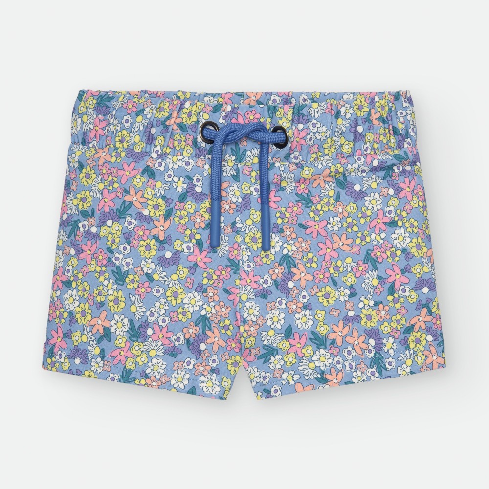 BAÑADOR BOXER DE LYCRA PARA NIÑO, CON ESTAMPADO DE FLORES MULTICOLOR.