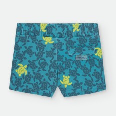 BAÑADOR BOXER DE LYCRA PARA NIÑO, CON ESTAMPADO DE FLORECITAS EN VARIAS TONALIDADES PREDOMINANDO LA GAMA DE COLOR VERDE AGUAMARINA.