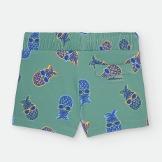 BAÑADOR BOXER DE LYCRA PARA NIÑO, CON ESTAMPADO DE FLORECITAS EN VARIAS TONALIDADES PREDOMINANDO LA GAMA DE COLOR VERDE AGUAMARINA.