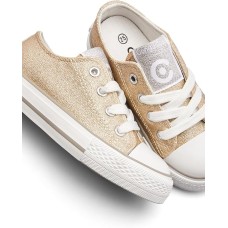 ZAPATILLAS DORADAS CON GLITTER PARA NIÑAS. AJUSTE CON CORDONES.