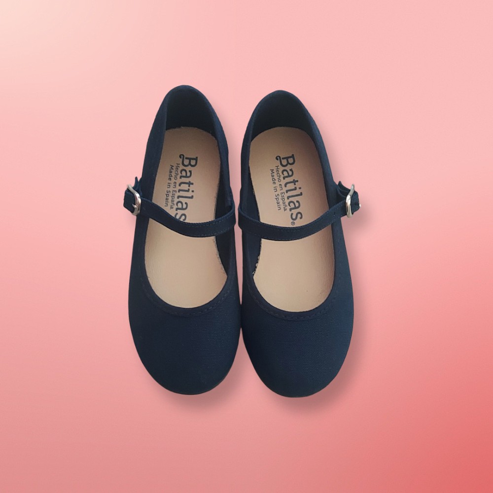 MERCEDITAS DE LONA PARA NIÑA CON CIERRE DE HEBILLA EN COLOR AZUL MARINO.