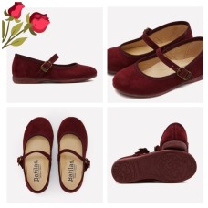 MERCEDITAS DE PIEL DE SERRAJE PARA NIÑA CON CIERRE DE HEBILLA EN COLOR GRANATE.