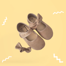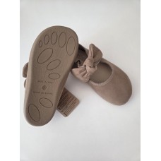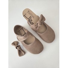 MERCEDITAS RESPETUOSAS DE PIEL DE SERRAJE PARA NIÑA CON CIERRE DE VELCRO EN COLOR ARENA/FANGO. LAZO DE QUITA Y PON.