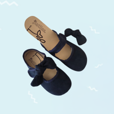 MERCEDITAS RESPETUOSAS DE PIEL DE SERRAJE PARA NIÑA CON CIERRE DE VELCRO EN COLOR AZUL MARINO. LAZO DE QUITA Y PON.