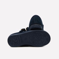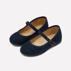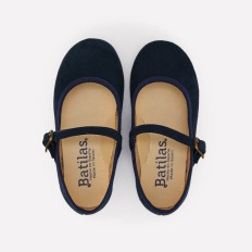 MERCEDITAS DE PIEL DE SERRAJE PARA NIÑA CON CIERRE DE HEBILLA EN COLOR AZUL MARINO.