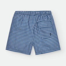 BAÑADOR DE TELA PARA NIÑO Y ADULTO. ESTAMPADO DE CUADROS VICHY AZULES. CORDÓN AJUSTABLE EN CINTURA Y BOLSILLO EN LA PARTE TRASERA.