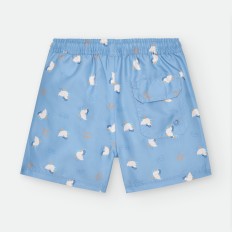 BAÑADOR DE TELA PARA NIÑO CON ESTAMPADO DE ZIG ZAG MULTICOLOR. CORDÓN AJUSTABLE EN CINTURA Y BOLSILLO EN LA PARTE TRASERA.