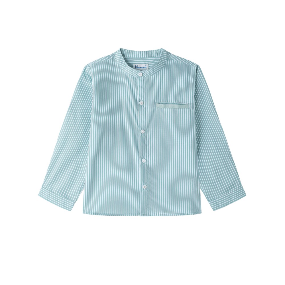 CAMISA PARA NIÑO CON CUELLO MAO DE RAYITAS VERDES.