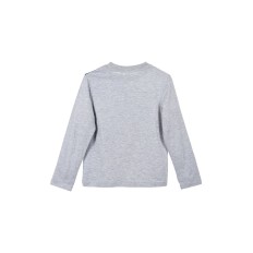 CAMISETA GRIS DE MANGA LARGA CON ESTAMPADO DE SPIDERMAN (MITAD PERSONA, MITAD SUPERHÉROE). LICENCIA ORIGINAL.