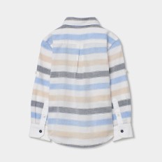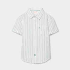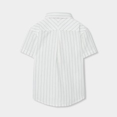 CAMISA DE MANGA CORTA PARA NIÑO DE ALGODÓN (70%) Y LINO (30%) CON LISTAS DE COLOR VERDE.