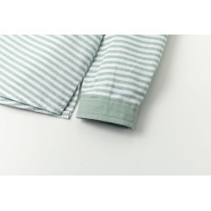 CAMISA DE VESTIR PARA NIÑO CON CUELLO MAO, DE RAYITAS EN COLOR VERDE EMPOLVADO. TRABILLAS PARA REGULAR LAS MANGAS.