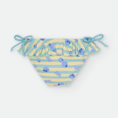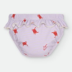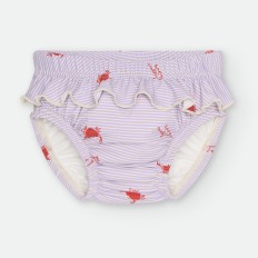 CULETÍN PAÑAL CON VOLANTE PARA BEBÉ DE RAYAS CELESTES Y BLANCAS, CON ESTAMPADO DE CANGREJITOS.