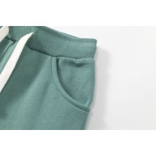 CONJUNTO DE CHÁNDAL FORMADO POR SUDADERA DE RIZO A LA CAJA Y PANTALÓN DE FELPA VERDE.