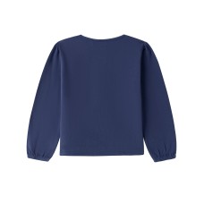 CAMISETA DE ALGODÓN PARA NIÑA DE MANGA LARGA DE COLOR AZUL MARINO CON HADA ESTAMPADA Y SU FALDA LILA DE TUL.