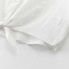 BLUSA PARA NIÑA DE COLOR BLANCO ROTO DE MANGA CORTA Y CON CUELLO, ABOTONADA Y CON LAZO PARA ANUDAR EN LA PARTE DELANTERA.