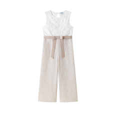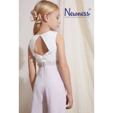 MONO PARA NIÑA DE PANTALÓN LARGO. PARTE SUPERIOR EN TEJIDO DE TUL CON MARIPOSAS 3D Y PARTE INFERIOR EN TEJIDO DE ALGODÓN. CINTURA CON LAZO DE GROSGRAIN. ABERTURA EN TRIÁNGULO EN LA ESPALDA.