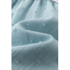 VESTIDO PARA NIÑA DE PLUMETI Y MANGAS A LA SISA. PARTE DE ARRIBA COLOR BLANCO Y DE LA CINTURA PARA ABAJO COLOR AZUL EMPOLVADO. ACOMPAÑADO DE BRAGUITA Y FAJÍN.